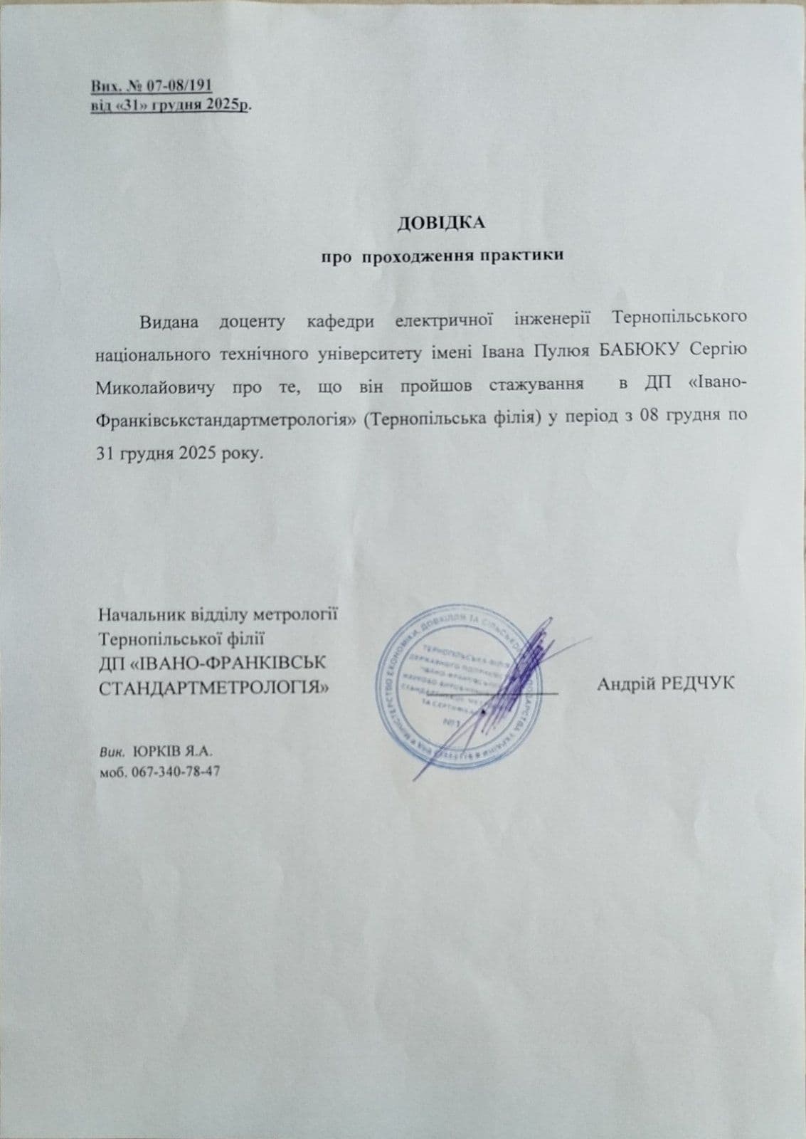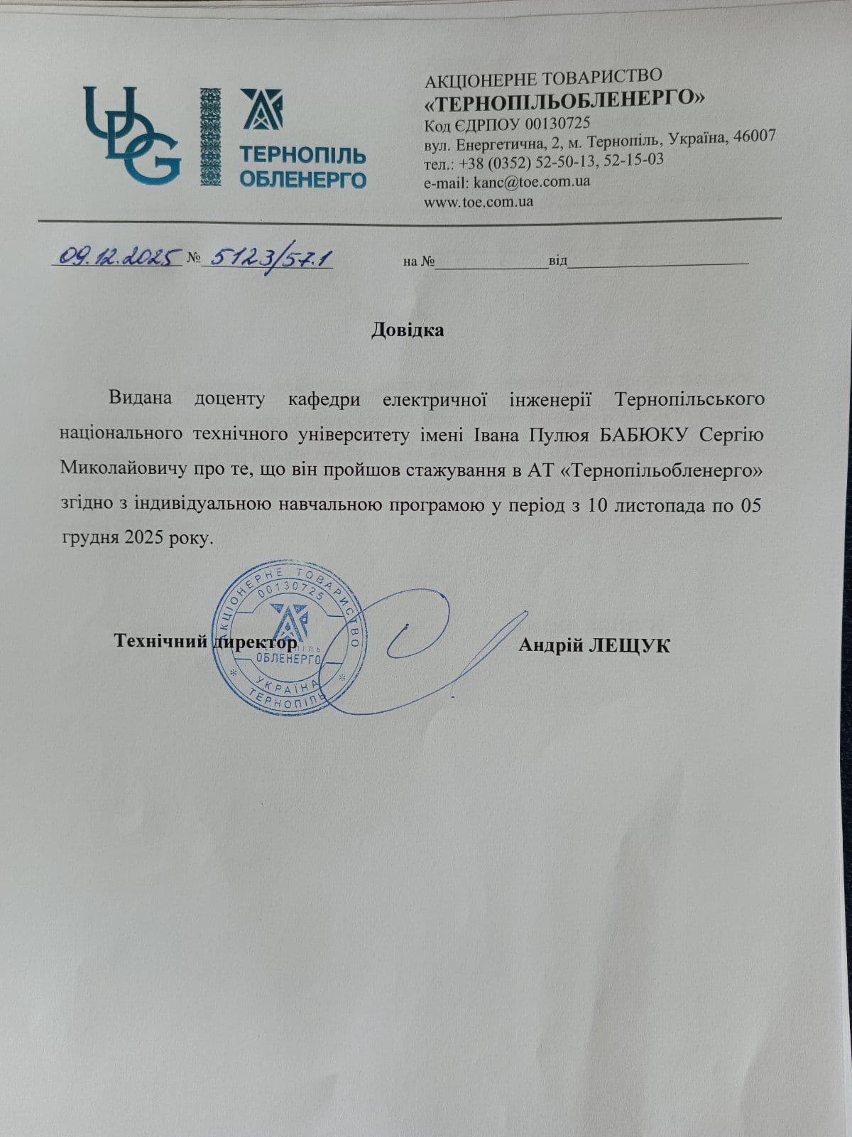 - 29.04.2025 р. - доцент кафедри електричної інженерії