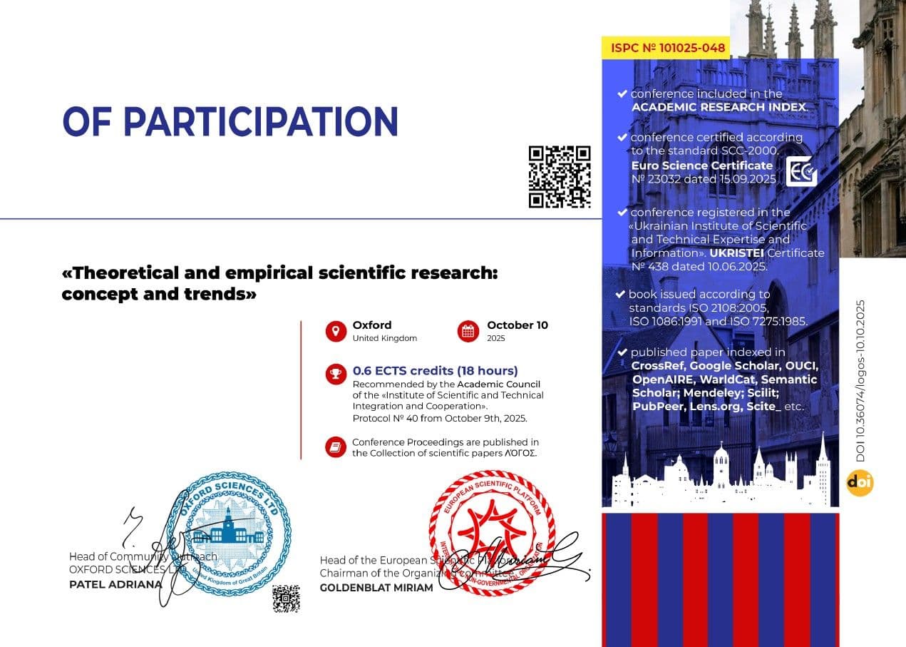 - Сертифікат онлайн курсів PROMETHEUS для викладачів «Академічна доброчесність» від 08.02.2023 р. обсягом 60 годин (2 кредити ЄКТС).