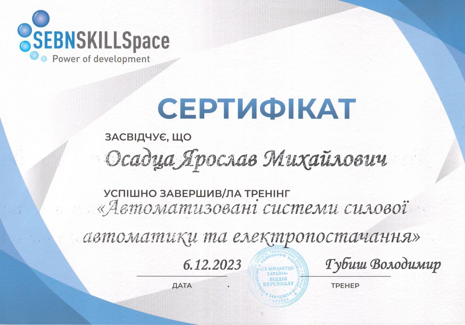 - Тренінг "Автоматизовані системи силової автоматики та електропостачання", 06.12.2023 р., СЕ-Борднетце-Україна.