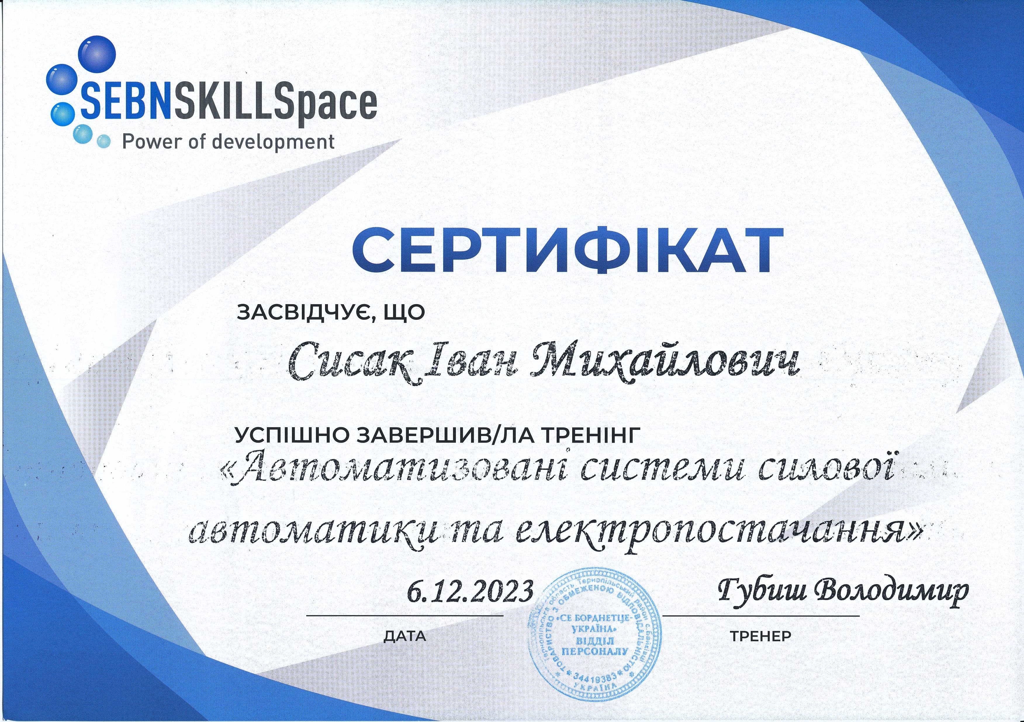 - Тренінг "Автоматизовані системи силової автоматики та електропостачання", 06.12.2023 р., СЕ-Борднетце-Україна.